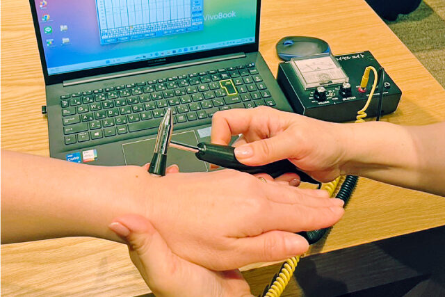 京都大学の故中谷義雄博士が発見構築した鍼灸医学の領域に科学的なEBMを導入した治療法に用いられる測定方法です。